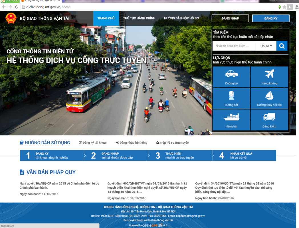 Ngày 28/11/2016 Bộ Giao thông chính thức khai trương Cổng dịch vụ công