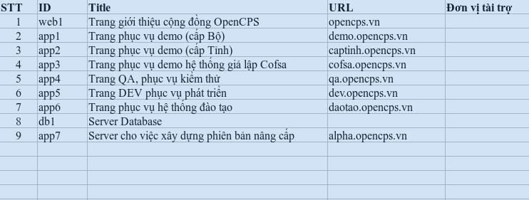 > Subject: [OpenCPS-BKT] [SERVER] - Kêu gọi về việc đóng góp server cho phát triển OpenCPS